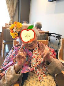 まずは母の日。今年は裁縫の得意なT井様に和柄のショールを作ってもらいました。食堂で少しずつ縫ってくれて完成しました。本当にありがとうございます。その和柄のショールとお花の飾りをつけて、記念撮影!